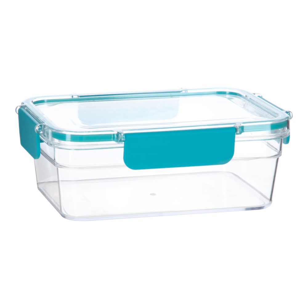 Contenedor de alimento de plástico tritan con tapa de y borde de silicona para un cierre hermético. 23.4x17.3x6 cm. Capacidad: 1300 ml. El tritan es un plástico con alta transparencia, resistente a impactos, libre de BPA, reciclable y ligero.