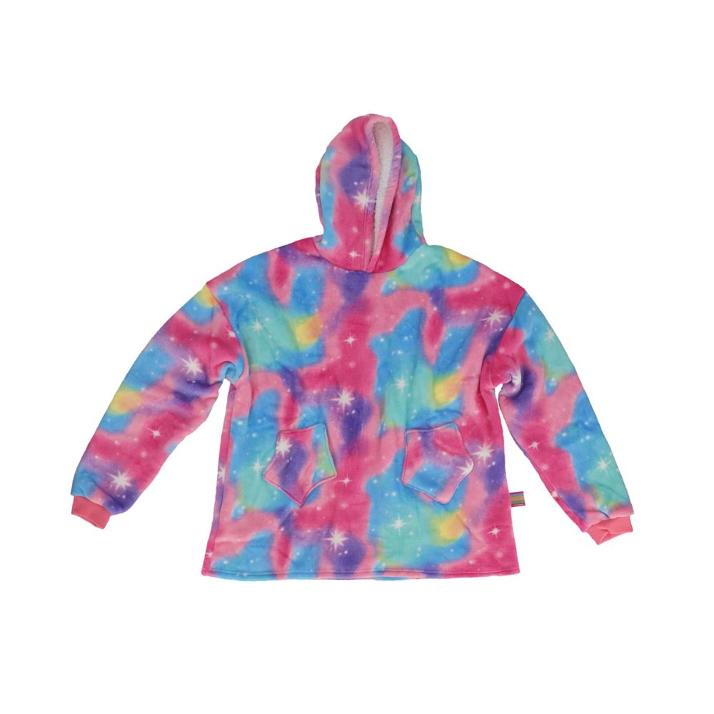 Maxi sudadera de tela corderito poliéster con gorro. Muy suave y peludito para ocupar en la casa. Ideal para niños entre 9 a 11 años.