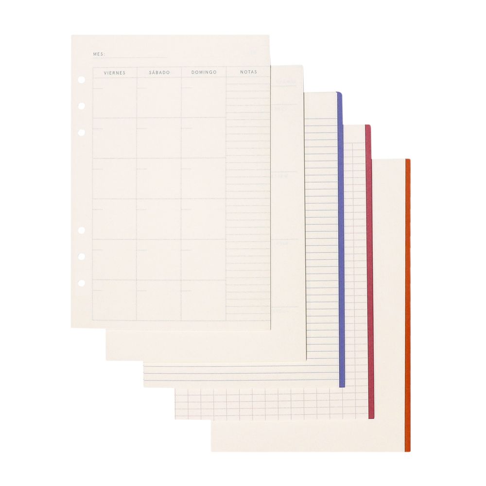 75 hojas de repuesto para ocupar en el archivador tamaño A5