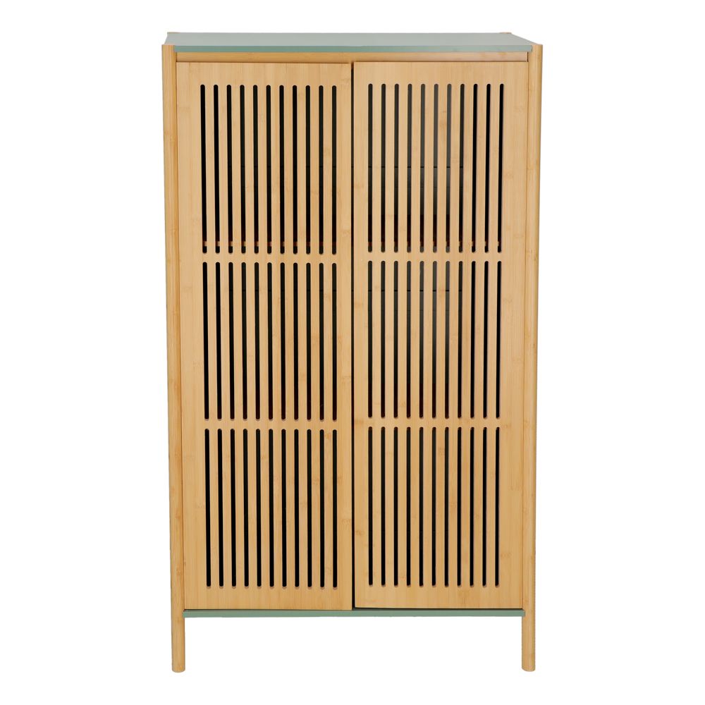 Armario con puertas de madera de bambú y estructura de mdf. Este producto requiere armado (Incluye instrucciones). Soporta hasta 15 kilos. Tiene un tamaño de 80x33x150 cm.