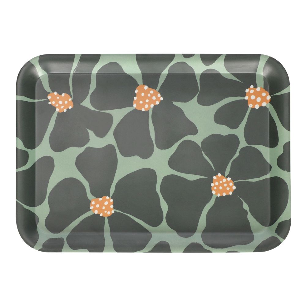 Bandeja rectangular de melamina con diseño decal.