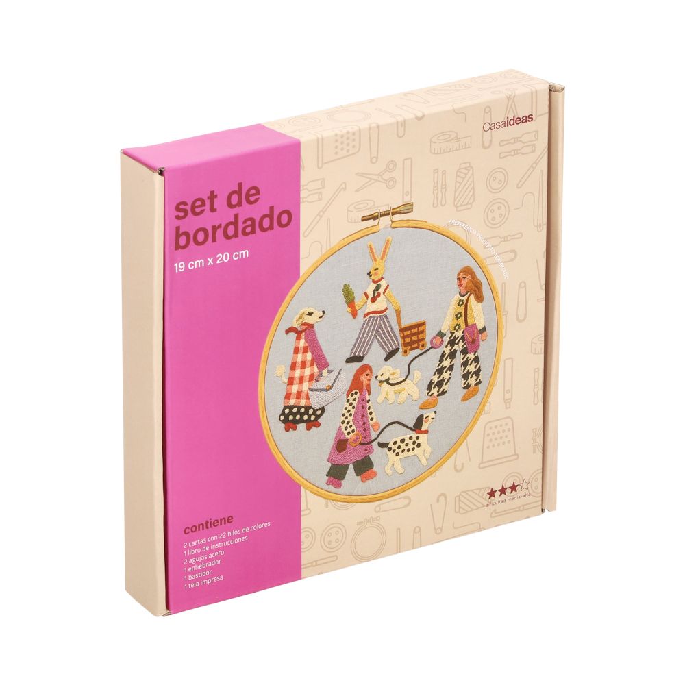 • Incluye: Bastidor 19x20 cm, carta de colores de hilos, tela impresa, set de 2 agujas y henebrados