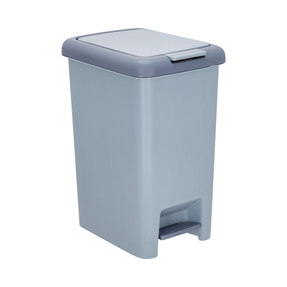Basurero de plástico con pedal. Tiene una capacidad de 15 l y un tamaño de 31x22x38.5 cm.