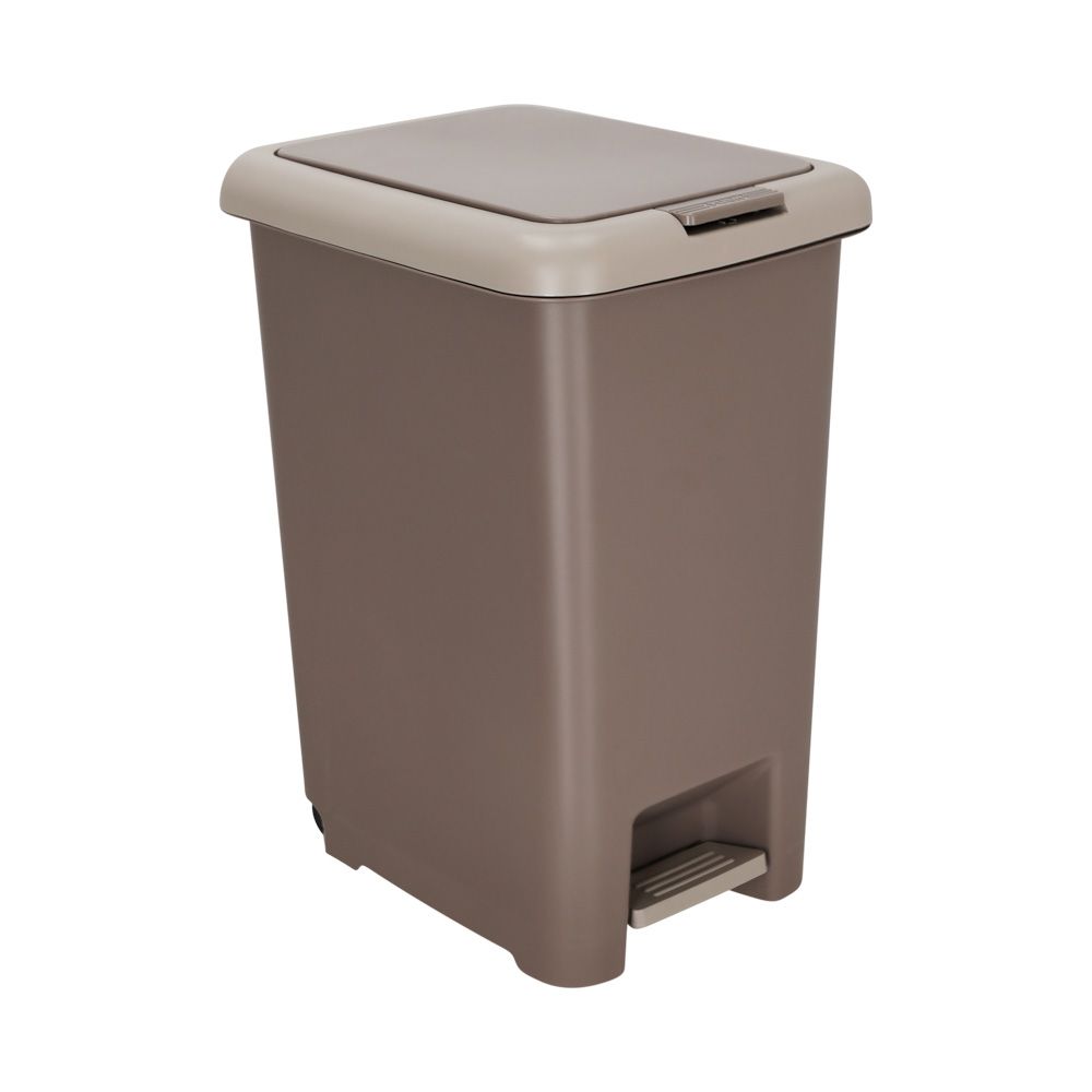 Basurero de plástico con pedal. Tiene una capacidad de 45 l y un tamaño de 44.5x33.2x56.5 cm.