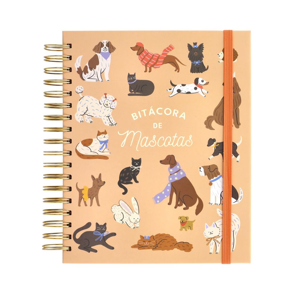 Bitácora para mascotas. En este cuaderno podrás registrar todos los datos de tus mascotas como el control de veterinario, vacunación, alimentación y mucho más. Cuenta con espacio para registrar los datos de 3 mascotas. Incluye: Ficha de mascota, desparasitación, alimentación, peluquería, contactos, viajes, álbum de recuerdos, tips de cuidado y 3 sobres para guardar documentos.