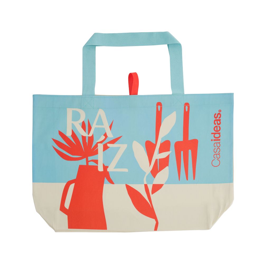 Bolso multiuso de algodón con diseño estampado. Tiene un tamaño de 60x40 cm.