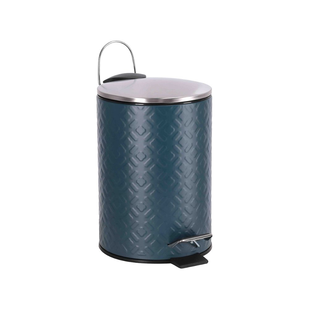 Bote de basura de metal con pedal y recipiente de plástico en el interior. Tiene una capacidad de 3 l.