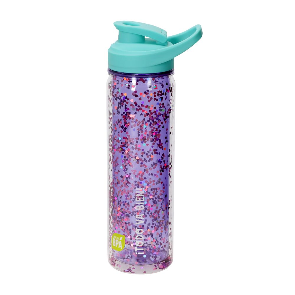 Botella de agua de tritan. Tiene divertido diseño. Tiene una capacidad de 590 ml y un tamaño de 7.4x27.4 cm.