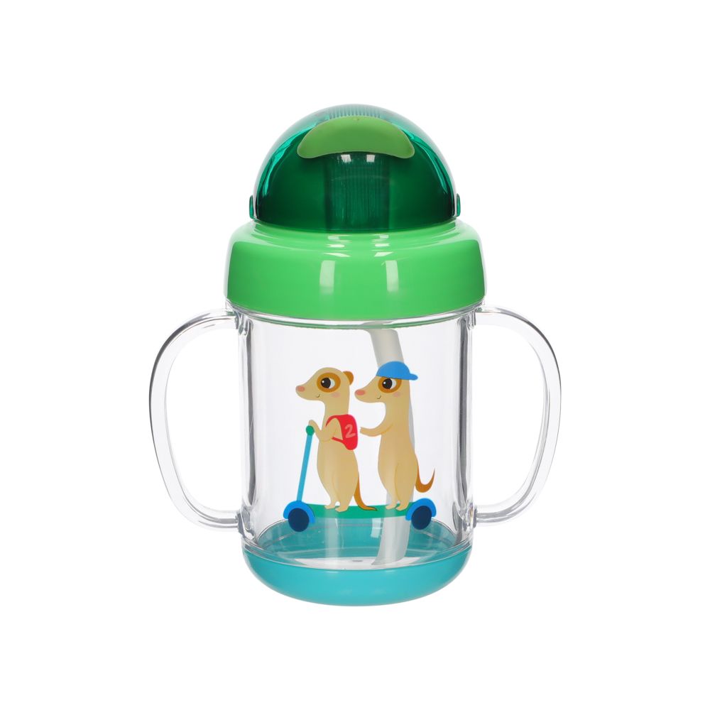 Botella infantil de tritan con asas. Ideal para preescolares. Tiene una capacidad de 200 ml y un tamaño de 14.5x6.3x6.9.