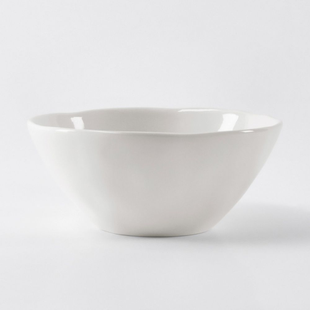 Bowl cereal de porcelana con bordes irregulares que combina lo delicado y lo rústico. resistente y durable. Tiene un tamaño de 15.3x6.8 cm. Pertenece a la Colección vajilla Porcelana Hammer. Apto lavavajillas y microondas.