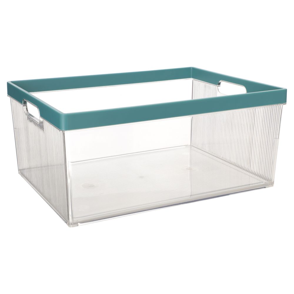 Caja organizadora de plástico para la despensa. Tiene una capacidad de 12 litros.