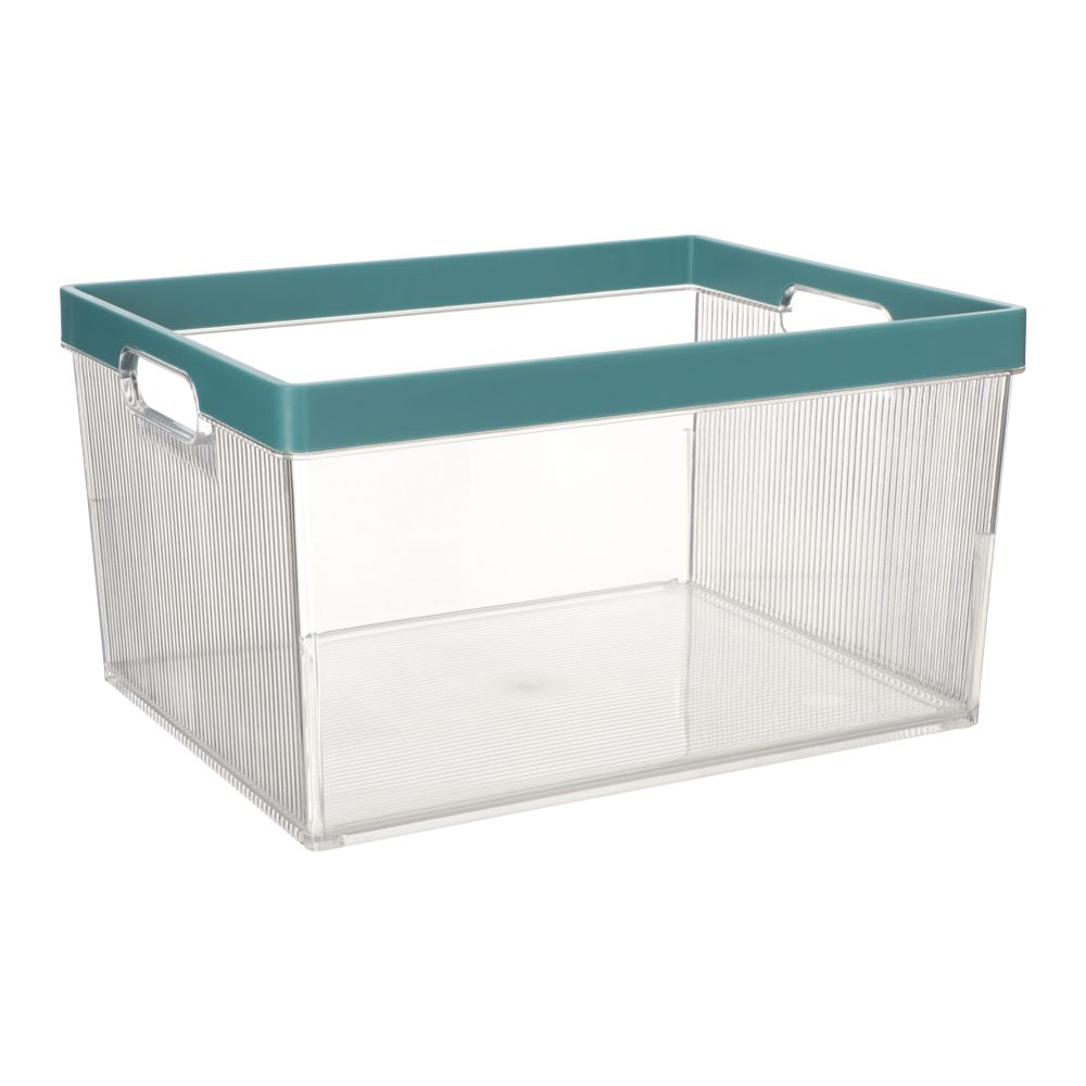 Caja organizadora de plástico para la despensa. Tiene una capacidad de 8 litros.