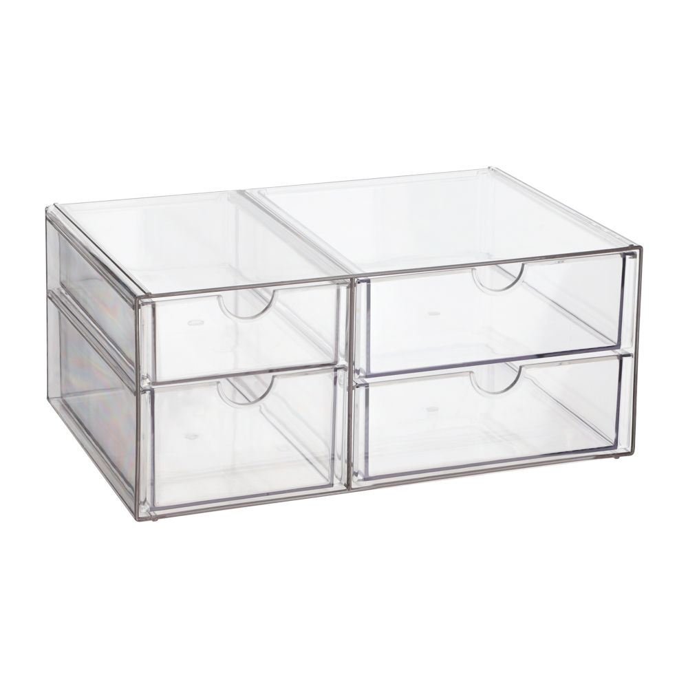 Cajonera con 4 cajones de plástico transparente plástico. Compatible con bandejas organizadoras.