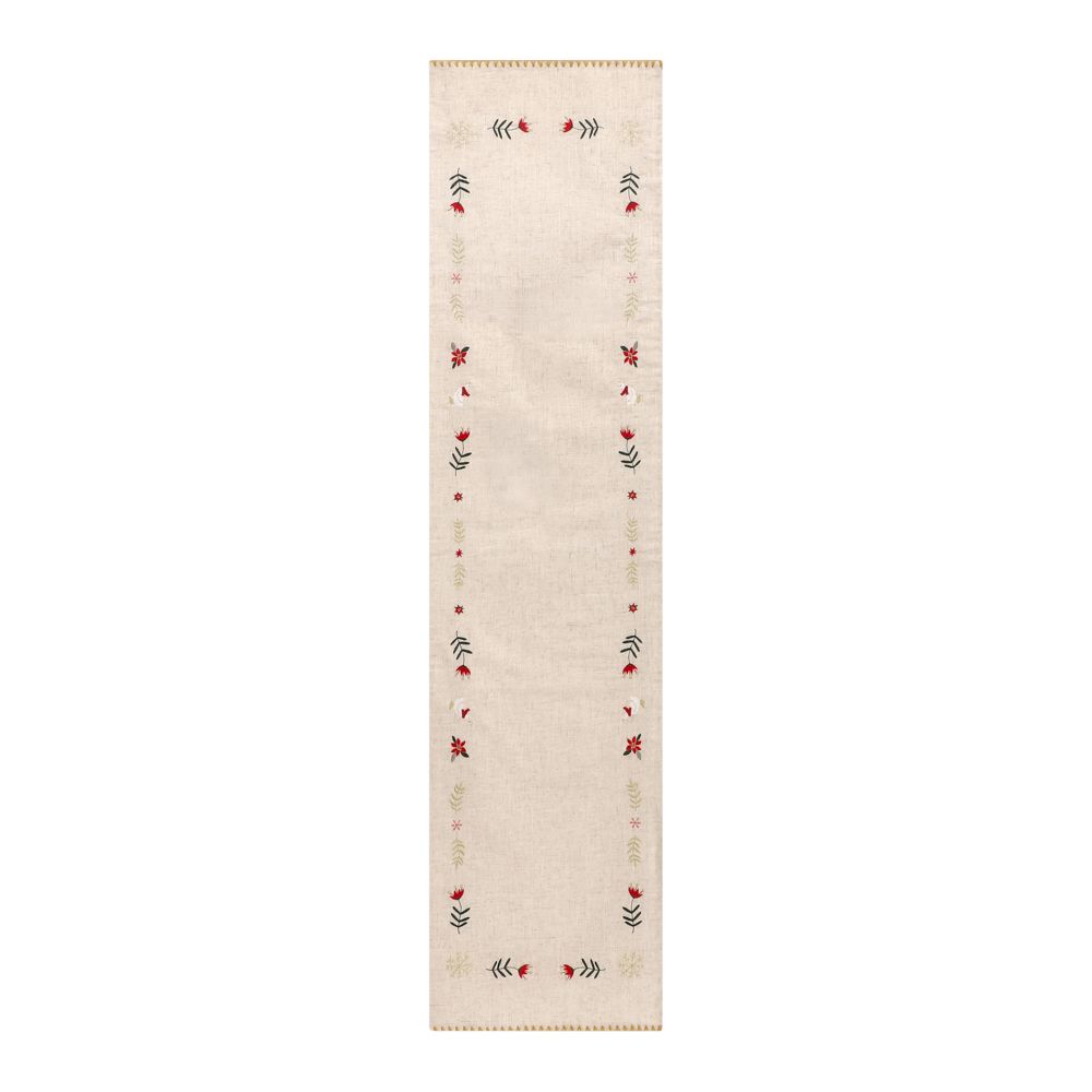 Camino de mesa bordado con diseño navideño. Este producto es parte de la colección Altezzo. Tiene un tamaño de 150x35 cm.