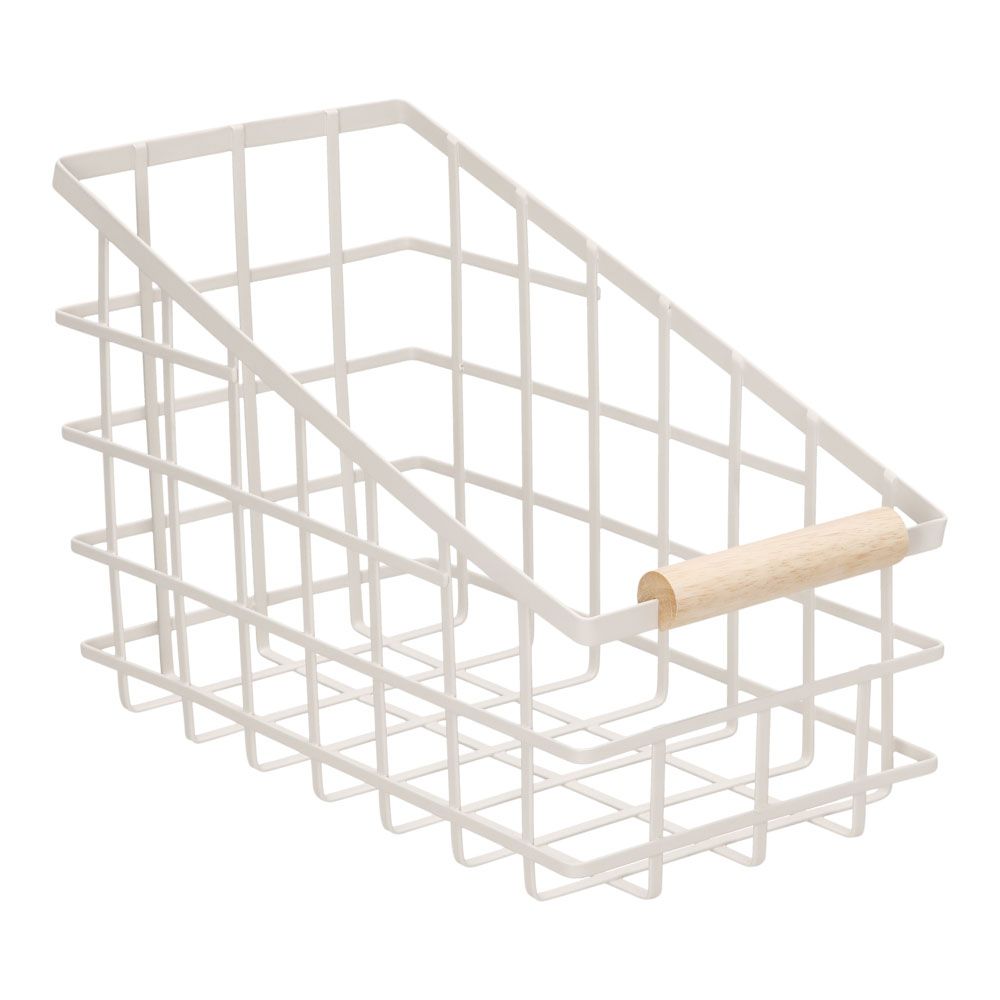Canasto de metal para organizar en la cocina. Tiene un tamaño de 16x30x20 cm.