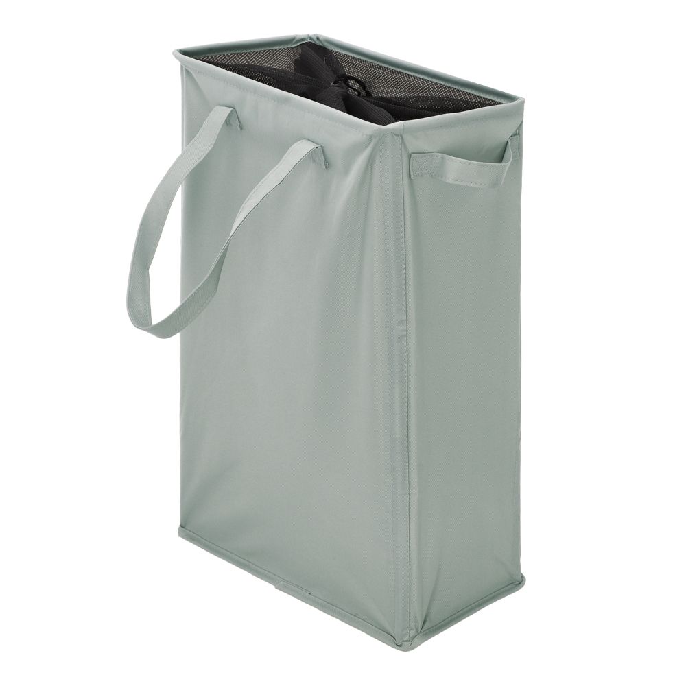 Canasto para la ropa angosto de poliéster. Ideal para poner en espacios pequeños. Tiene un tamaño de 39x19x60 cm.