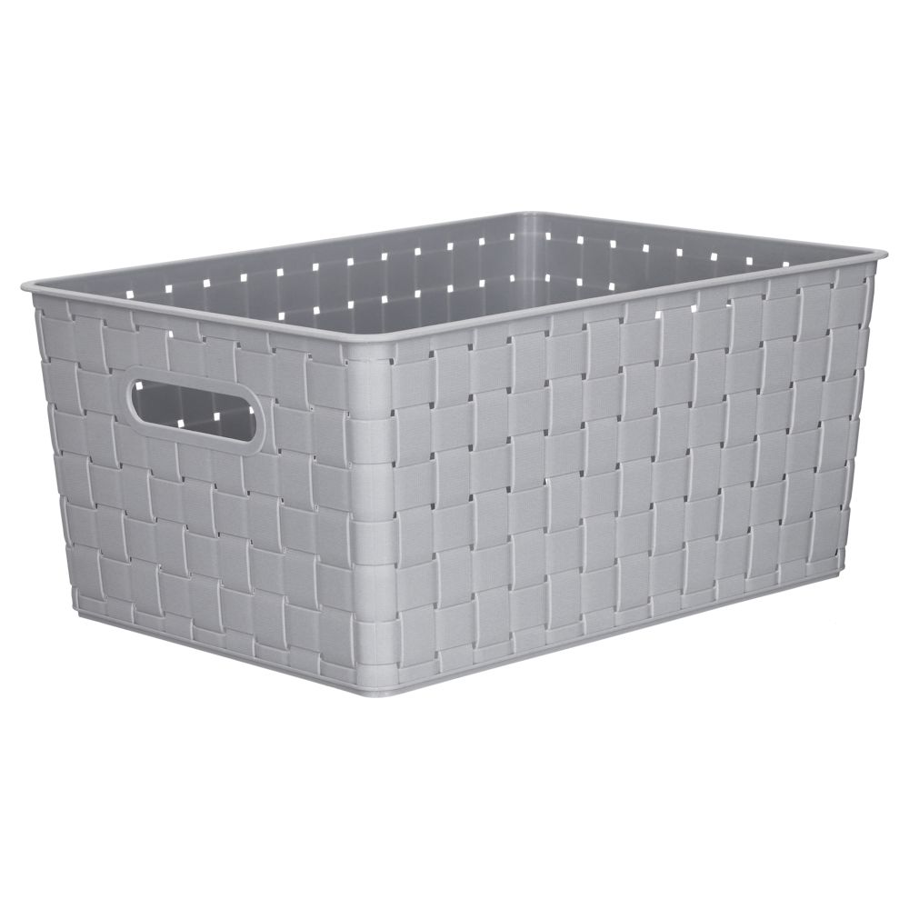 Canasto plástico polipropileno con textura trenzada. Ideal para ordenar los espacios en tu hogar.