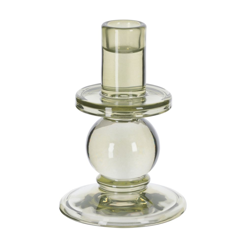 Candelabro perfil de vidrio para vela dinner. Tiene un diámetro de 9x13.3 cm.