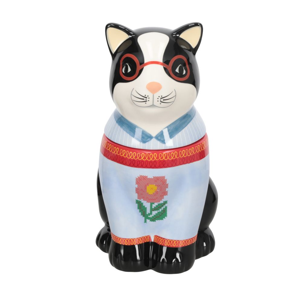 Canister de cerámica con forma de gatito. Ideal para poner en tu cocina y guardar galletas.