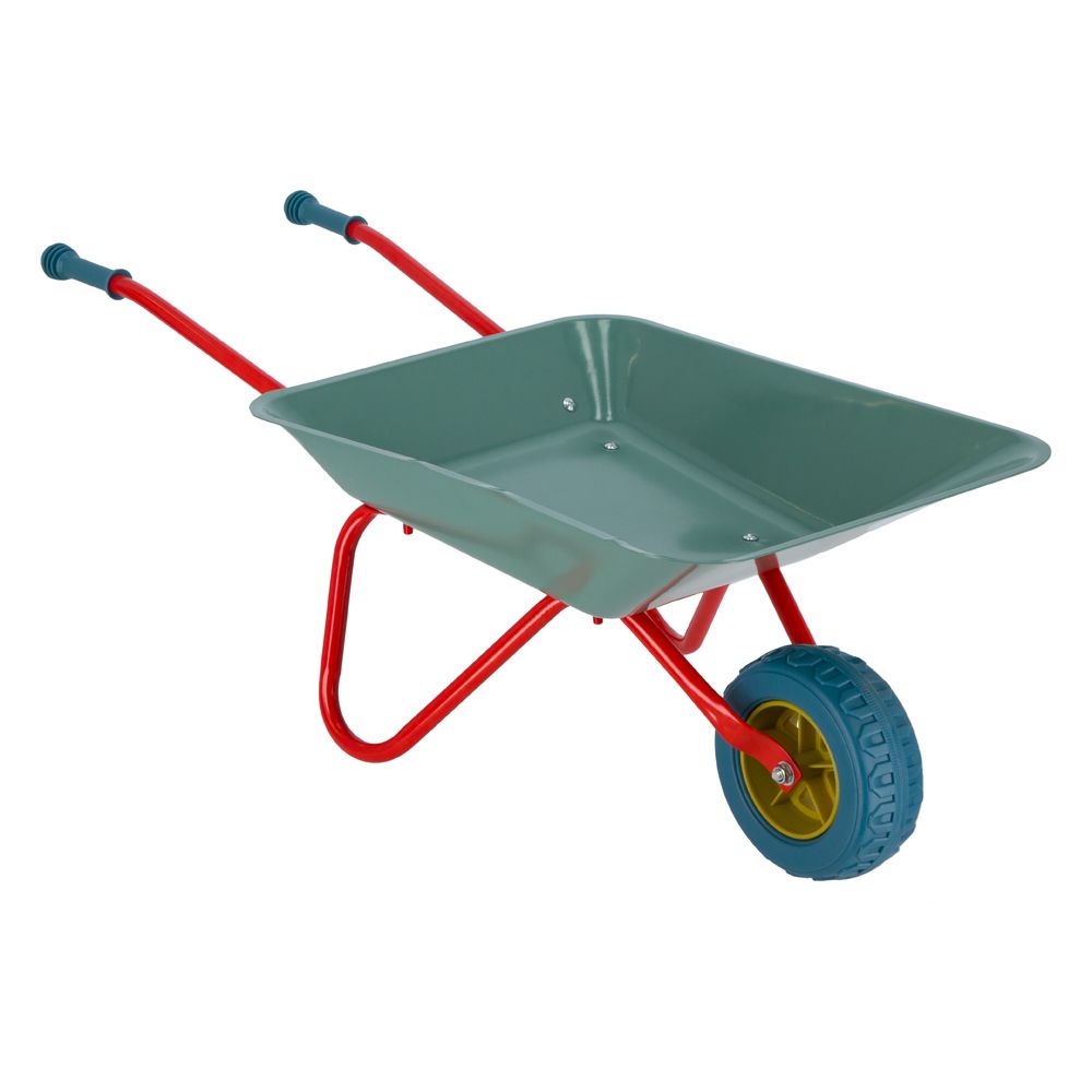 Carretilla de metal para que tus pequeños puedan trabajar y disfrutar en el jardín. Soporta hasta 10 k. Ideal para mayores de 5 años. Limpiar con paño húmedo.