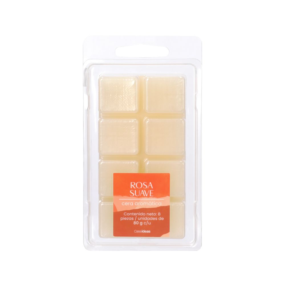 Cera aromática en barra con olor de Rosa Suave. En este producto vienen 8 cubitos de 80 gr cada uno para derretir en quemadores de aceite y aromatizar tu hogar.