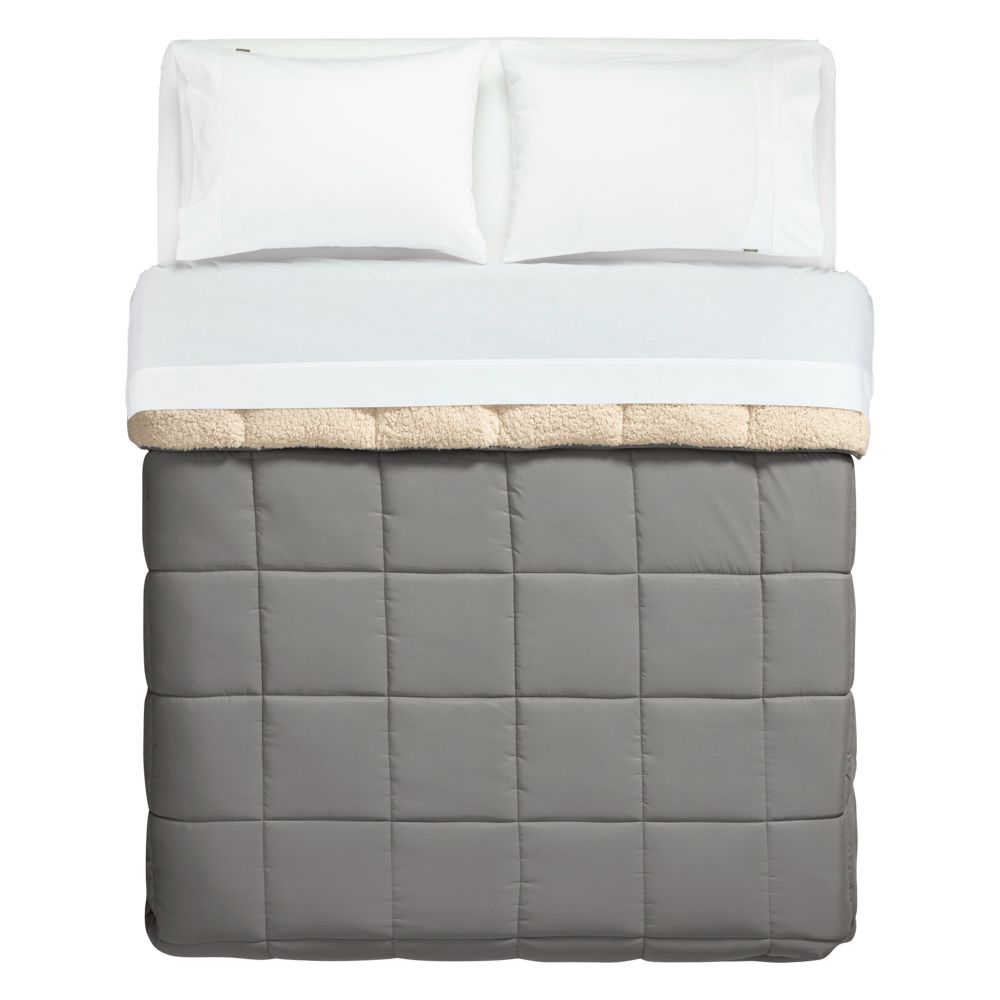 Cobertor con cubierta de poliéster de 230 hilos, relleno de poliéster reciclado y con reverso tipo borreguito. Disponible en tres medidas. No incluye funda de almohadón. Tiene un tamaño de 270x250 cm. Cuenta con certificación Oeko-Tex.