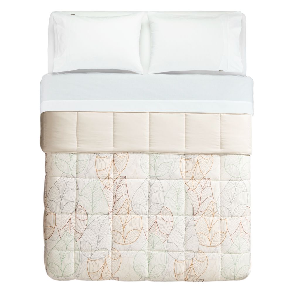 Cobertor de microfibra estampado con terminación prelavada y relleno de poliéster.