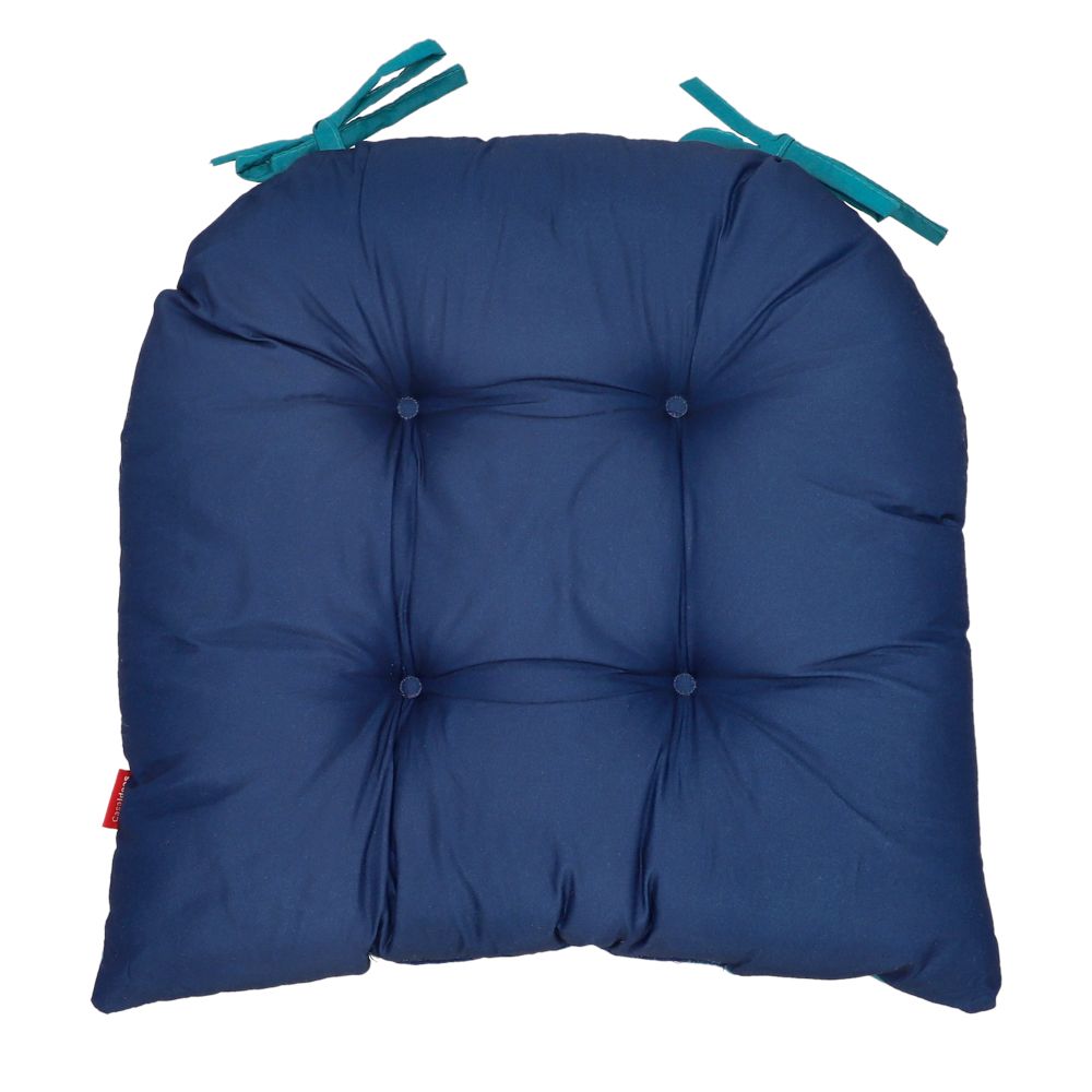 Cojín con cubierta de poliéster, amarras para fijar a la silla y relleno de poliéster