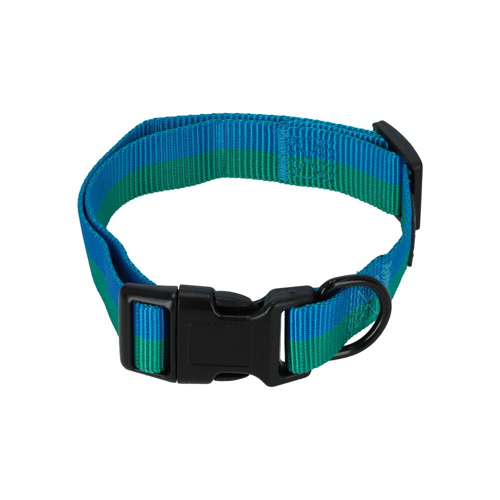 Collar de cinta tejida poliéster bicolor con hebilla de plástico y argolla de acero tipo D ajustable al cuello de tu mascota. Disponible en tres tallas. Talla S - Mascotas pequeñas Mínimo: 23 cmMáximo: 35 cm Talla M - Mascotas medianas Mínimo: 34 cmMáximo: 48 cm Talla L - Mascotas grandes Mínimo: 47 cmMáximo: 60 cmLavar a mano con agua y detergente suave