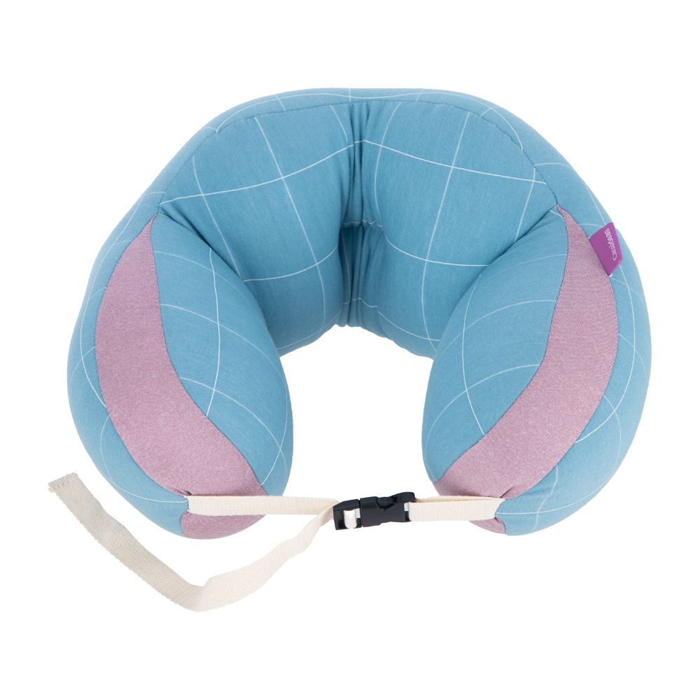 Collarín cervical con relleno de micropelotitas. Producto ideal para viajes. Cuenta con broche para asegurarlo al cuello. 30x30x14 cm