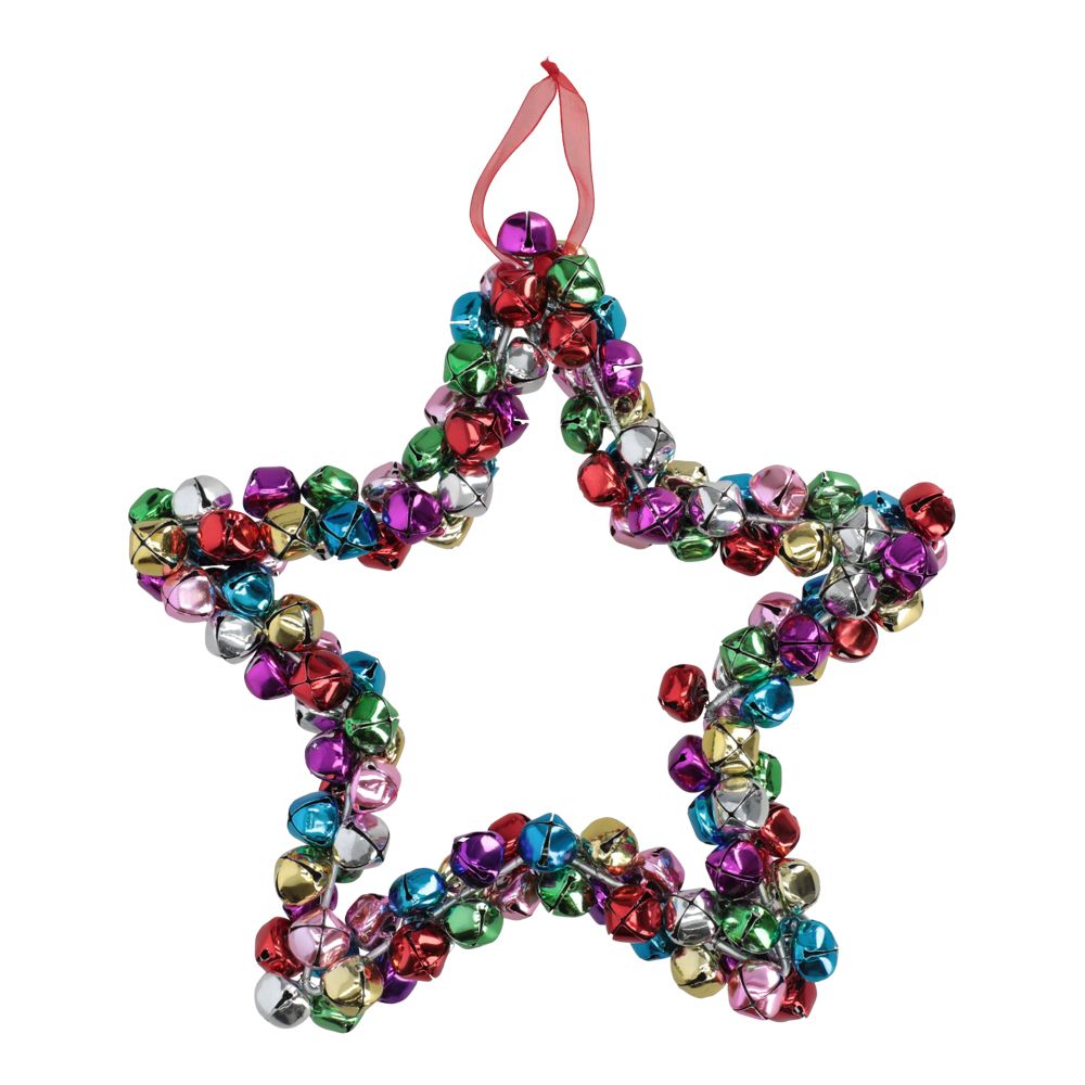 Corona navideña para la puerta con cascabeles y cinta para colgar