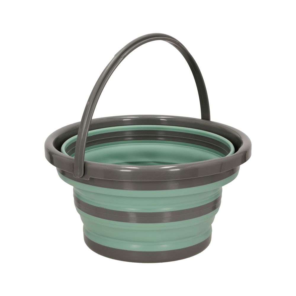 Balde de aseo plegable con asa. Cuenta con una capacidad de 10 litros. Tiene un tamaño de 33x34 cm.