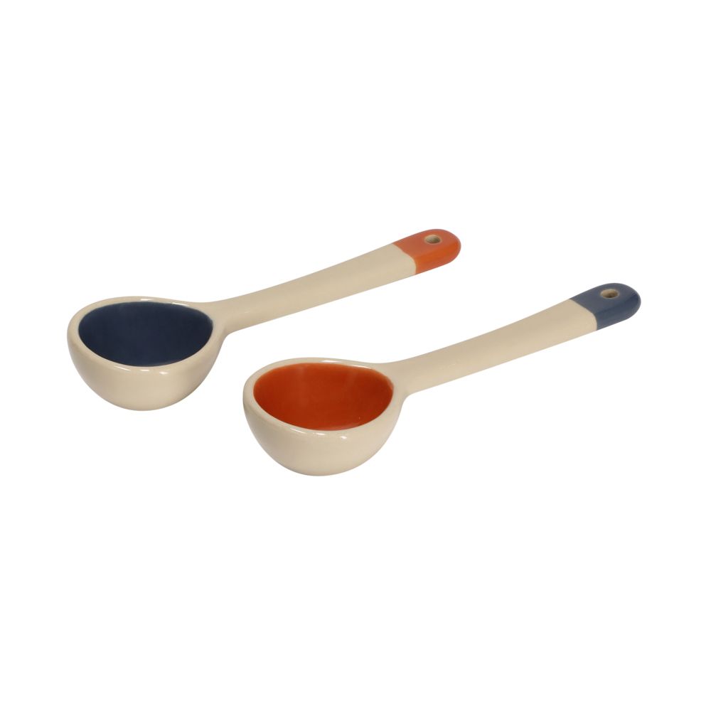 Set de dos cucharas de porcelana. Ideal para ocupar en botanas.
