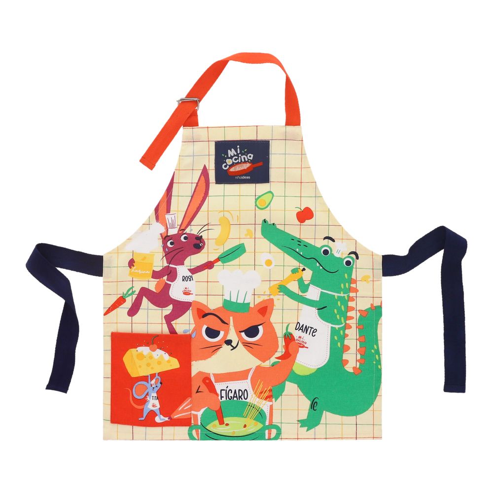Delantal de chef infantil con algodón y lindo diseño ilustrado. Producto talla única (Ideal para niños de 3 a 6 años).