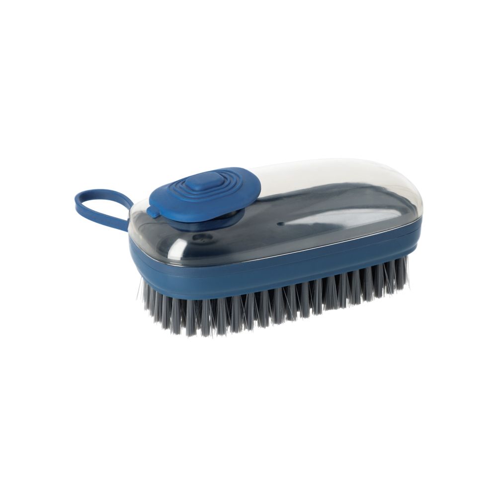 Escobilla para la ropa con contenedor para el detergente. Tiene un tamaño de 12x5.5 cm.