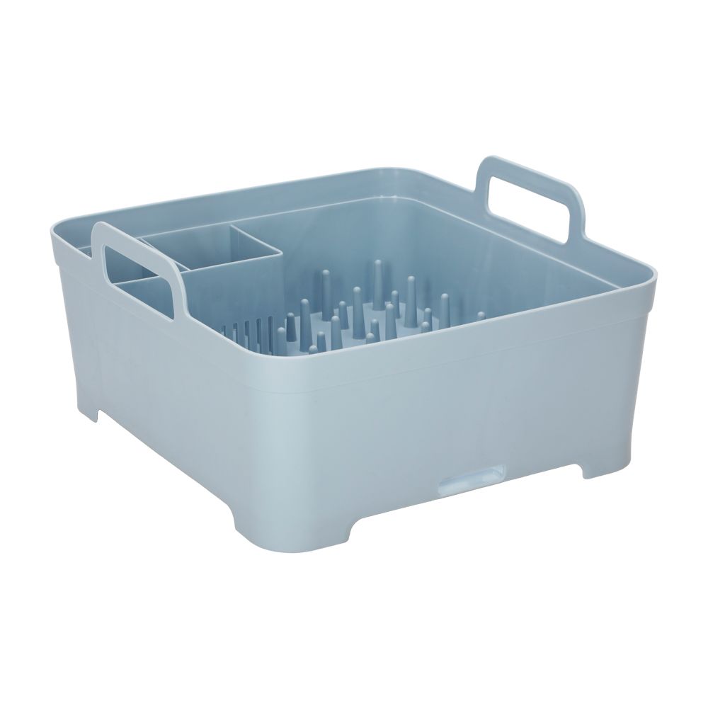 Escurridor de plástico con agarradera. Gracias a su mango es ideal para trasladar, por lo que se puede ocupar en exteriores. Podrás llevar tus cubiertos o Platos a tu terraza o patio. Cuenta con una capacidad de 9 Platos y un tamaño de 37x33.5x18 cm.