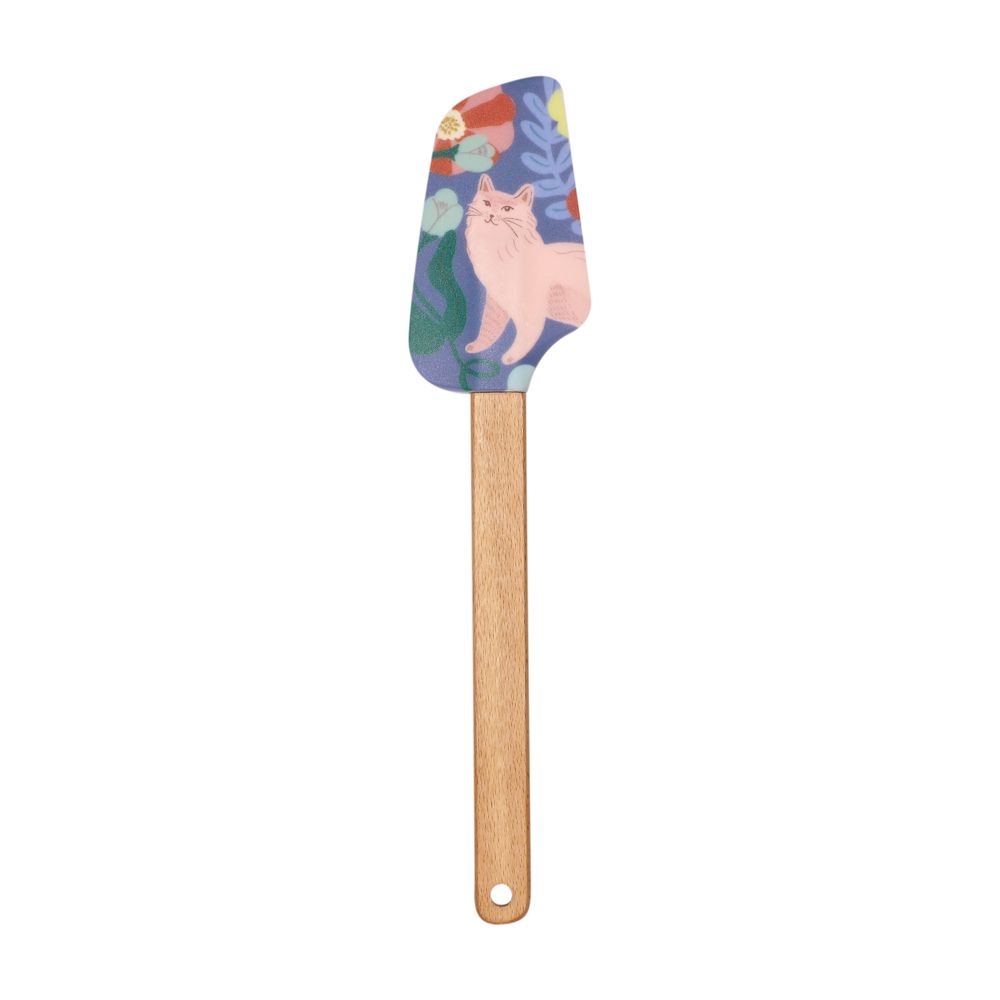 Espátula de silicona con mango de madera haya con diseño estampado para repostería.