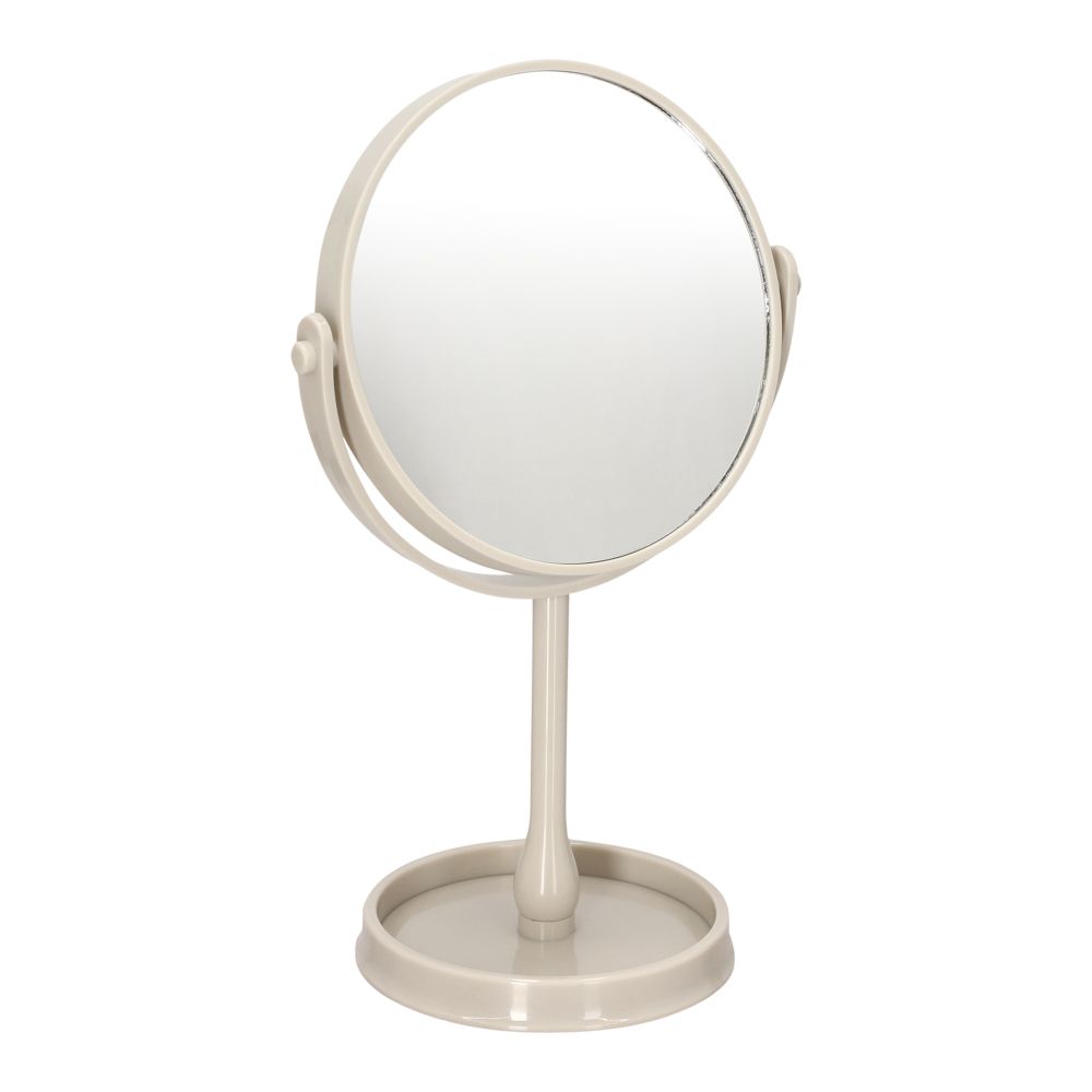 Espejo con pedestal de plástico PS y aumento 2x. Ideal para apoyarlo en el baño o en el mueble velador del dormitorio.