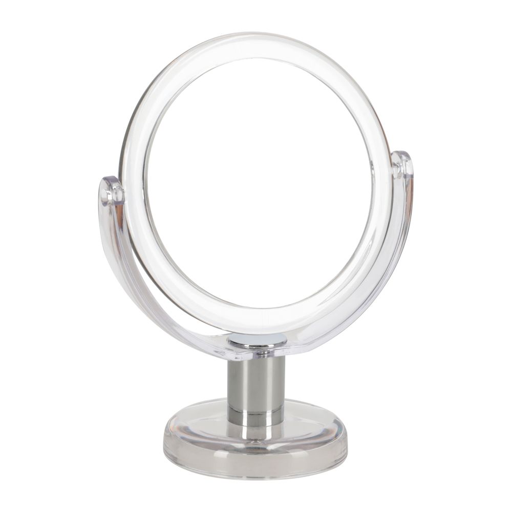 Espejo pedestal con aumento x2. Tiene un tamaño de 22x16.5 cm.