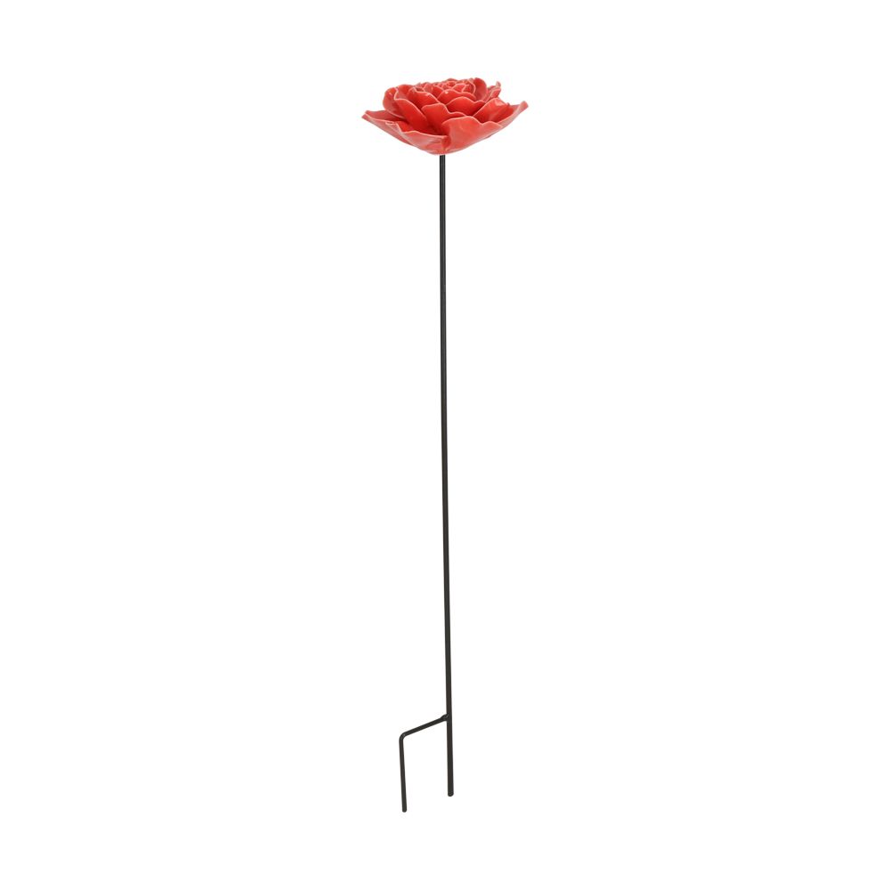 Estaca de metal para jardín con flor de cerámica. Tiene un tamaño de 10x10x50 cm.