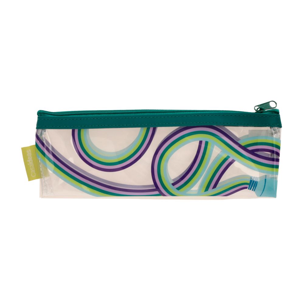 Estuche para guardar los artículos de aseo y llevar al colegio. Tiene un tamaño de 21x1x7 cm.