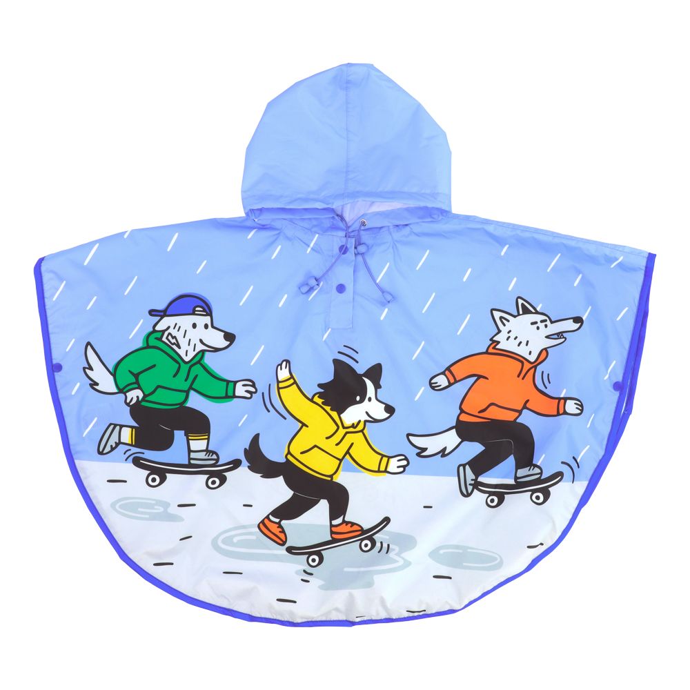 Impermeable infantil de poliéster tipo poncho con capucha.