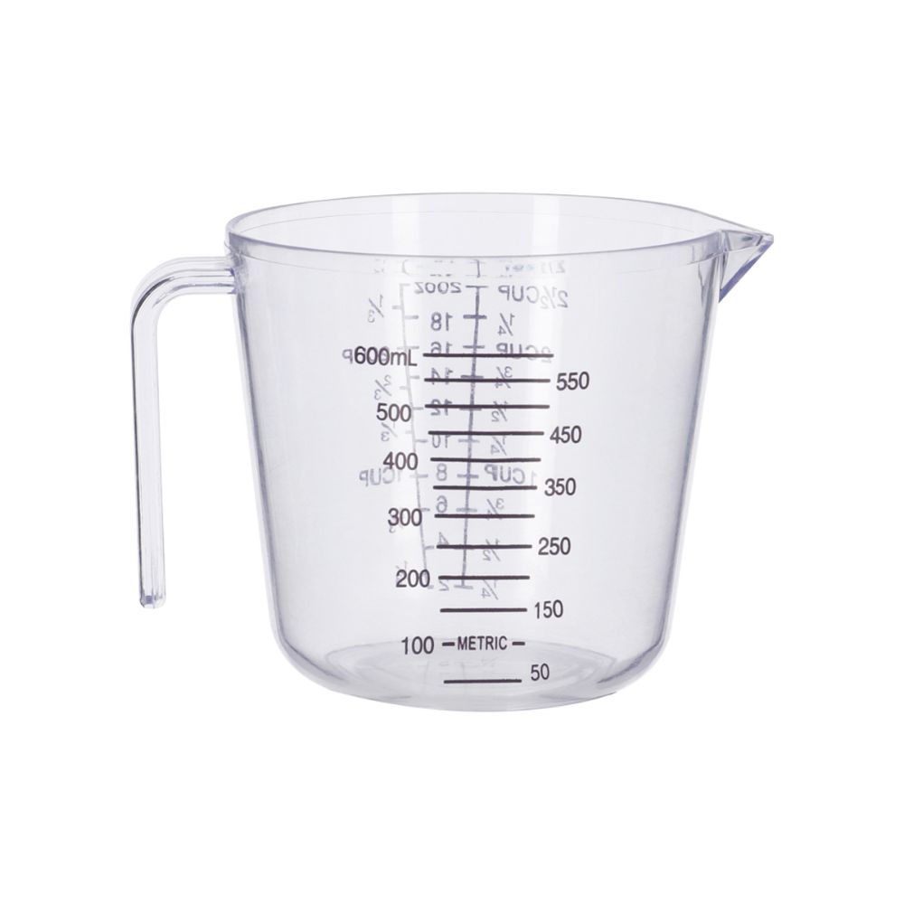 Jarra de plástico con medidas. Temperatura máxima: 80° C. Capacidad: 600 ml. No apto para lavavajillas.