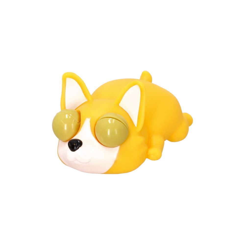 Juguete con forma de perrito con ojos saltones. Apriétalo para que salten sus ojos.