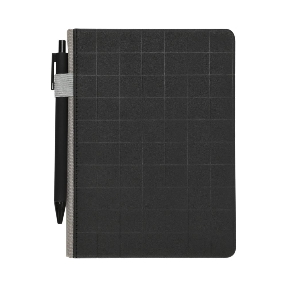 Libreta para composición que incluye elástico y bolígrafo con tinta negra. Tiene 96 hojas con líneas. Cuenta con un gramaje de 80 g. Tiene un tamaño de 13.5x1.9x18.5 cm.