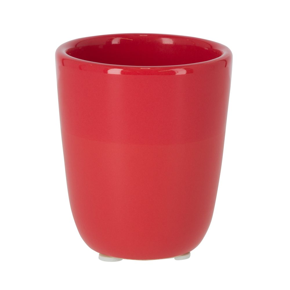 Maceta de cerámica con esmaltado mate y brillante de color liso. Tiene un diámetro de 7.5x8.5 cm.