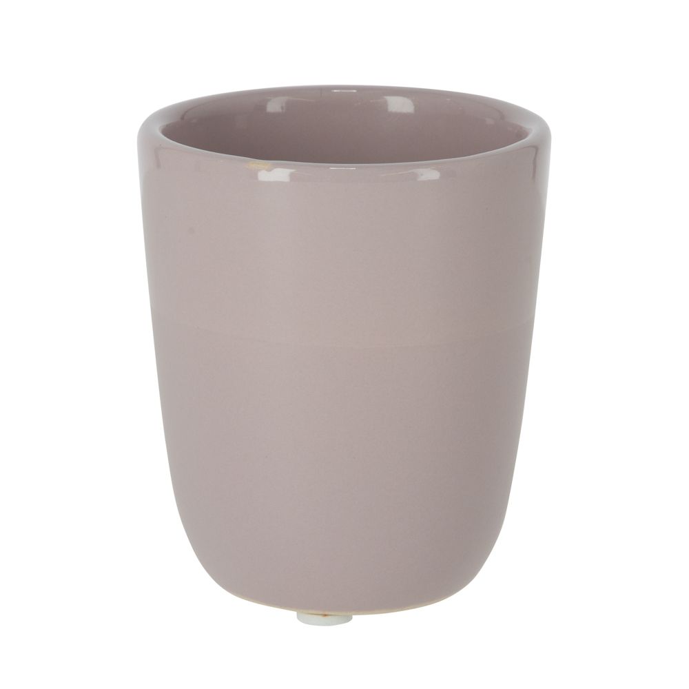 Maceta de cerámica con esmaltado mate y brillante de color liso. Tiene un diámetro de 7.5x8.5 cm.