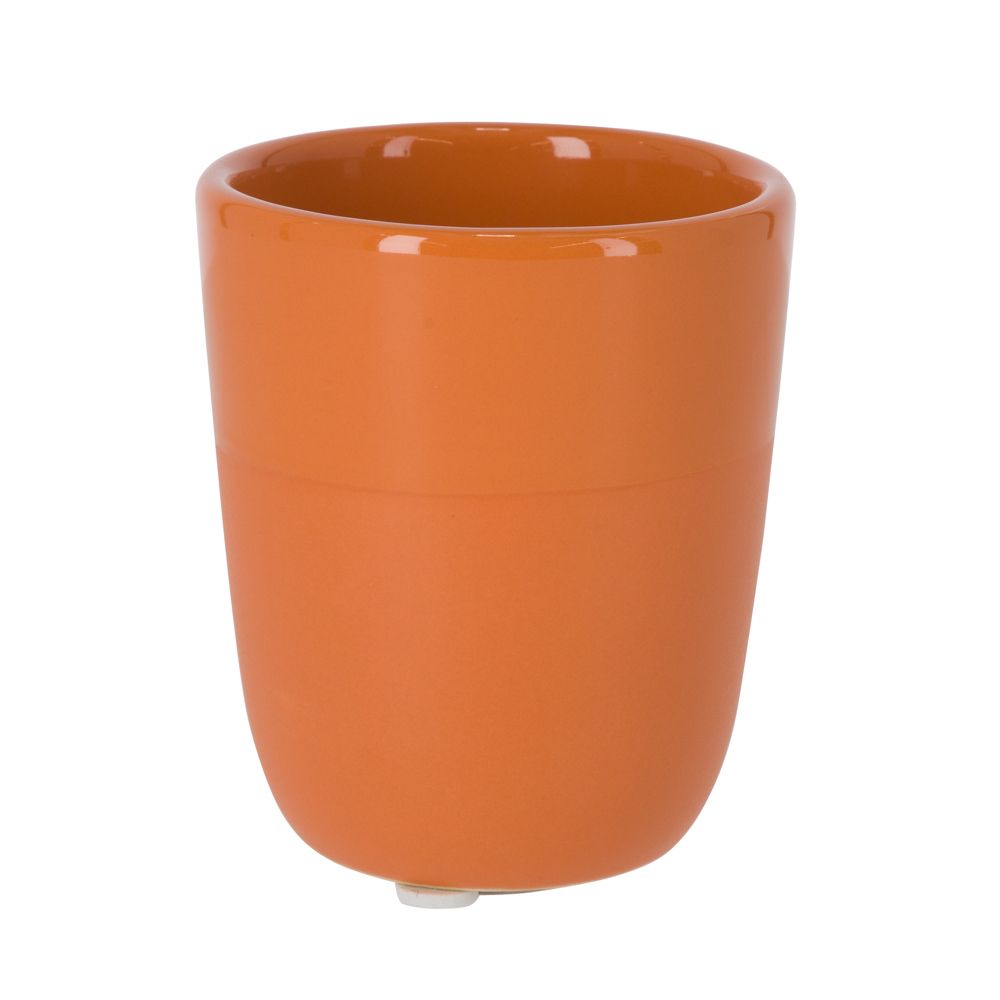 Maceta de cerámica con esmaltado mate y brillante de color liso. Tiene un diámetro de 7.5x8.5 cm.