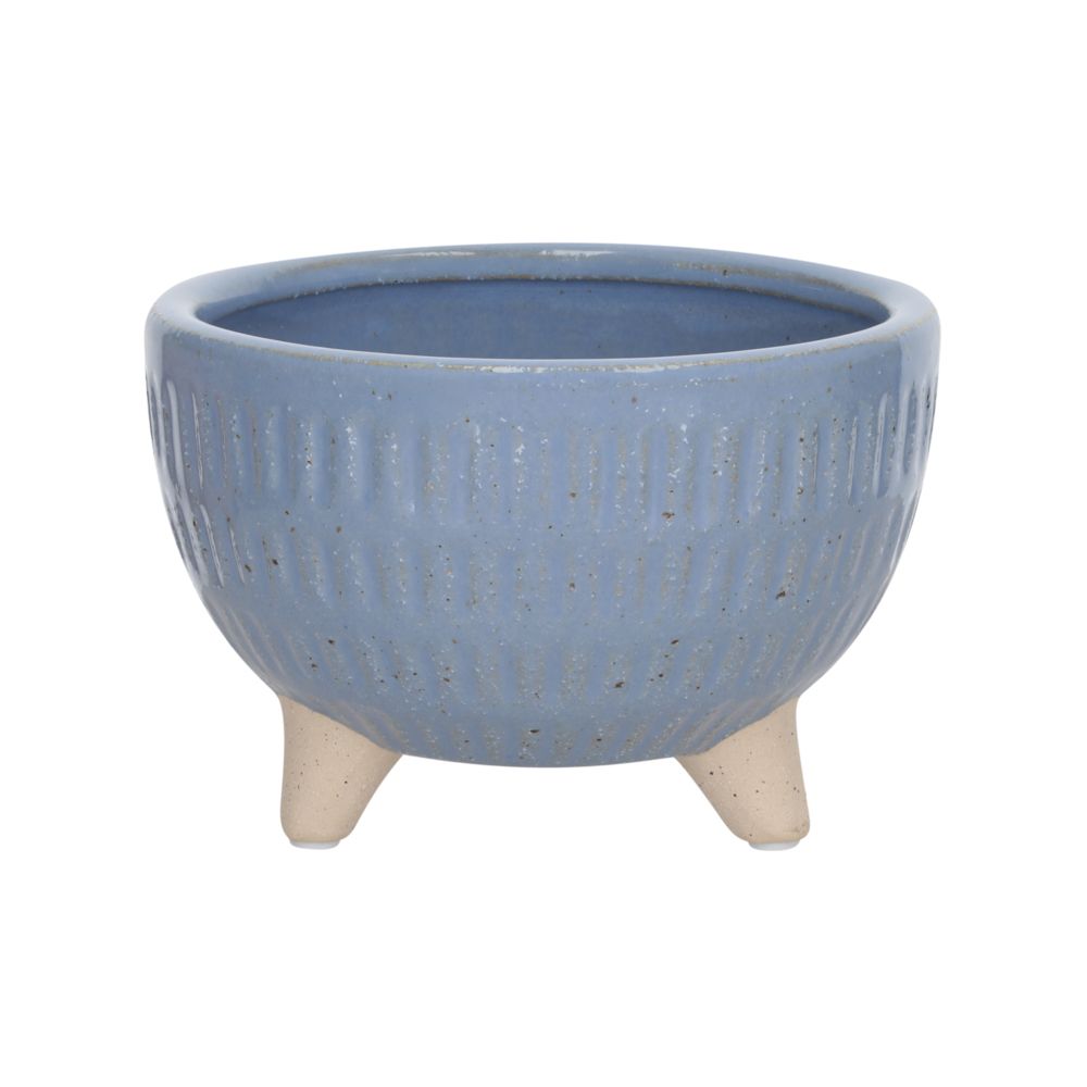 Maceta de cerámica texturada con patas