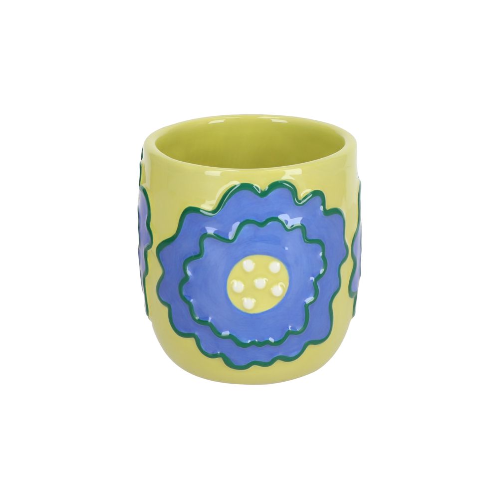Macet de cerámica pequeña con diseño emboss de flor. Cuenta con una capacidad de 270 ml